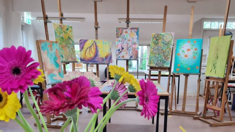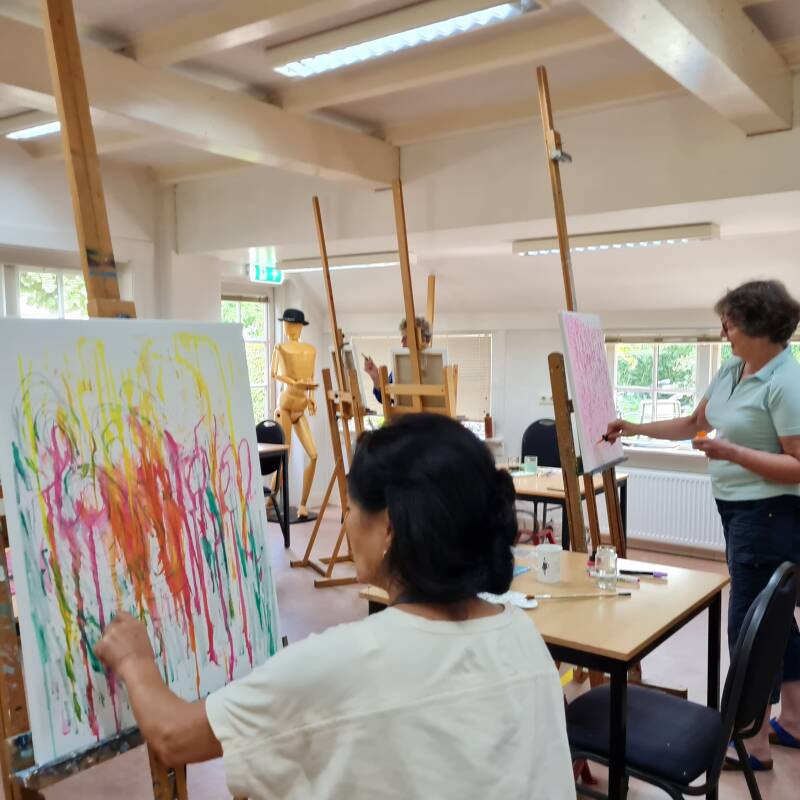 Dat is geen probleem, de workshop is geschikt voor zowel beginners en gevorderden. Er worden geen cijfers gegeven, er is geen oordeel. Iedereen mag vanuit een veilige ruimte op zijn of haar eigen manier creëren. Het is toch prachtig om de uniekheid en eigenheid in het werk te zien. Of je nu fijn en precies werkt of juist groots en grof, figuratief of abstract, het is allemaal goed. Voel je vrij om je te laten gaan en eventuele blokkades te doorbreken.